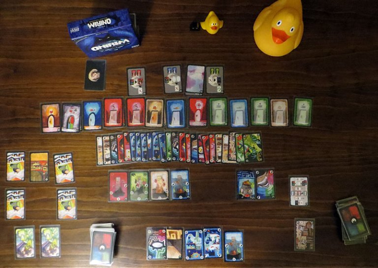 Del resto, hay varias cosas negativas si nos decidimos a jugar con todo -que lo haremos, denlo por hecho, aunque sea para probar. Lo más llamativo es una cuestión de practicidad: con tantas cartas el mazo se hace muy poco manejable. Es cierto que, sobre todo con los cazadores de sueños, el tema de barajar se reduce pero aún así habrá que hacerlo a menudo. Y manejar tantas cartas es algo incómodo; tanto, que casi pide a gritos una versión digital que elimine un aspecto que acaba siendo una pesadez. Y otro contratiempo añadido: lo que era un juego de mesita de avión acaba comiéndose una mesa generosa si queremos tener todo desplegado como recomienda el manual.
