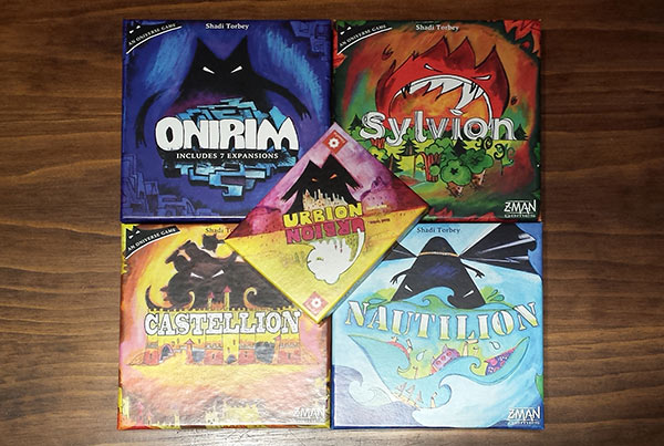Onirim. Ya el nombre es evocador. Se trata del primero de una serie de juegos que se agrupan bajo el sugerente título de ‘Oniverso‘ y que forman una colección creada por el jugón y cantante (!) belga Shadi Torbey que ya tiene cinco capítulos y que, si bien difieren entre sí -y bastante- en sus mecánicas, comparten tres características muy marcadas que le confieren empaque al conjunto y una personalidad propia: la vocación de entretenimiento solitario (o, como mucho, para dos en cooperativo); la sencillez de reglas y mecánicas; y, sobre todo, un arte tan particular como bello y original, firmado por la ilustradora Élise Plessis.