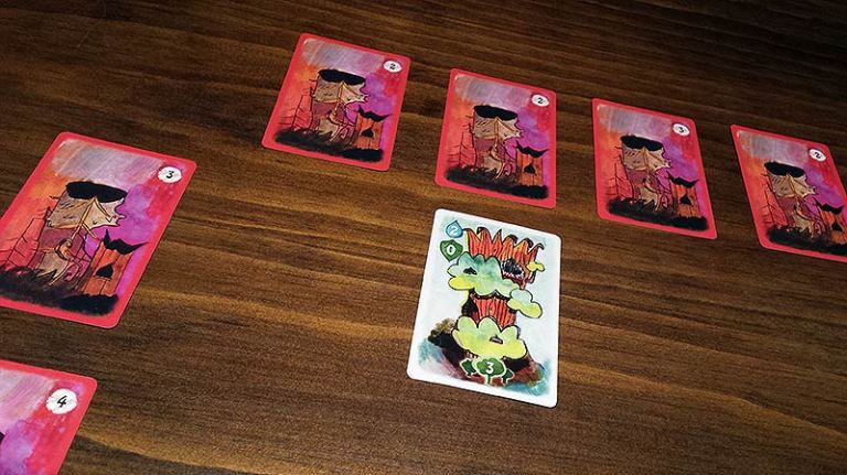 El jugador puede hacer uso de dos tipos de cartas más: los animales, que otorgan poderes específicos que van desde eliminar enemigos a moverlos, etc.; y los árboles. Estos tienen fuerza 0, lo que implica que no aguanten (casi) ningún envite. Sin embargo, tienen un número que indica cuántas cartas de bosque podemos ‘curar’ al final de la partida. Y es que no hay que perder de vista que el objetivo no es únicamente aguantar: debemos tener todo el marco en verde y los árboles, inútiles en combate, se muestran imprescindibles en este punto. Así que saber cuándo jugarlos es otro punto de la estrategia.