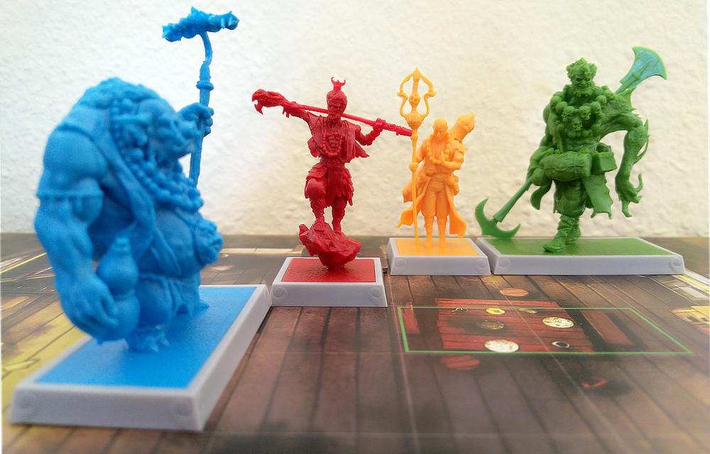O del jugador, porque el juego es perfecto para jugarlo en solitario. El despliegue no es tan engorroso como pueda parecer y se hace con soltura. Luego, una cosa que tiene es que los cuatro personajes deben estar presentes. Un humano podría asumir el control de cada uno pero es tan importante estar coordinado y actuar como un equipo que realmente no sé hasta qué punto uno disfrutaría la experiencia de asumir el rol de su personaje de forma individual. Más aún si uno es Tripitaka y tiene más limitadas las acciones por su presunta fragilidad, como decíamos antes. En este juego uno puede llevar a un personaje si lo entiende más como un control de sus estadísticas y cartas que otra cosa.