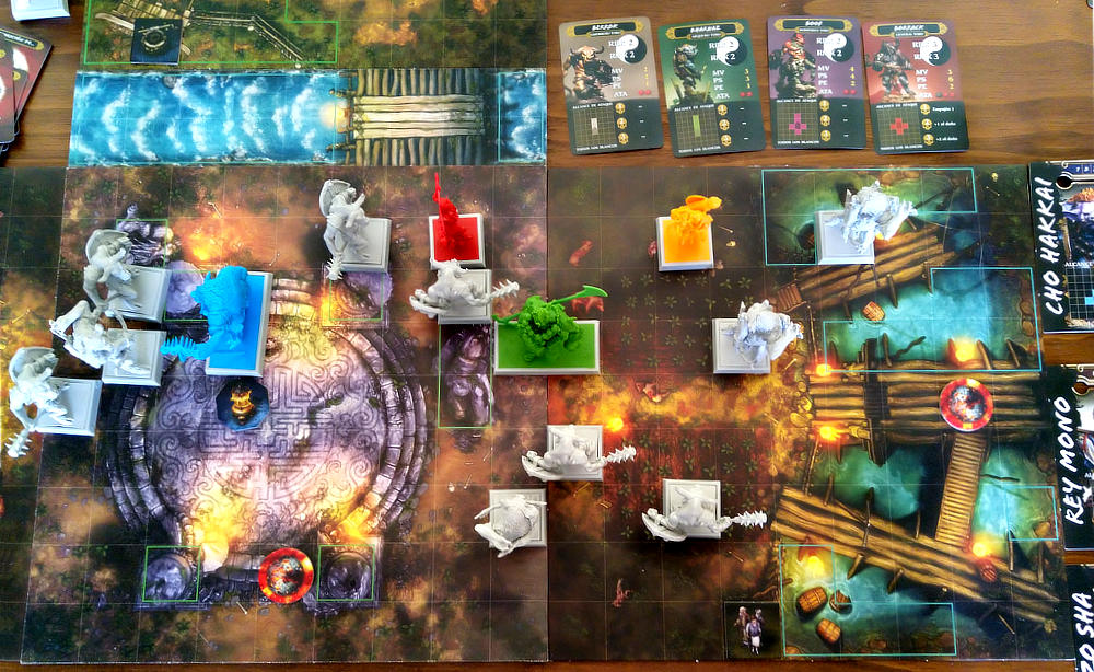 A riesgo de parecer repetitivo, puede que este sea un buen punto para recordar que hablamos de un juego estrictamente cooperativo, en el que los cuatro monjes deben colaborar para cumplir el objetivo de cada misión al tiempo que se protege a Tripitaka, que es el personaje más importante en el argumentario del juego (aunque no tanto en el del libro, como vimos).