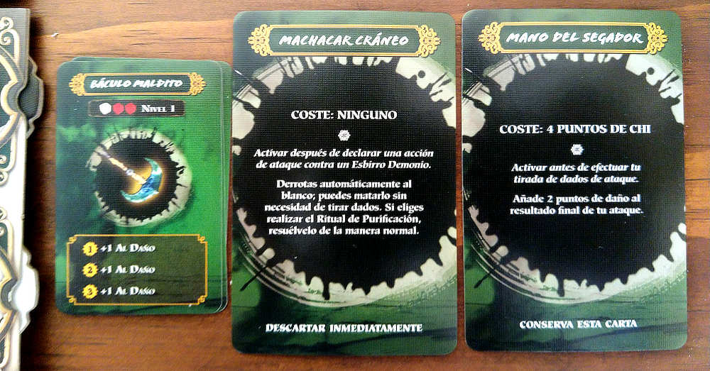 La única diferencia viene a través de las armas de cada cual, que aportan un daño adicional al ataque, mayor según se vayan desarrollando. También hay otro modificador posible: el de las cartas de habilidad. Cada monje inicia la partida con dos, que le pueden dar un pequeño empujón efímero o continuo a su poder mortífero, o a otros aspectos como el movimiento, la defensa, etc.