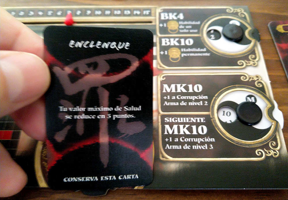 Acumular mal karma pues es feo, qué les vamos a decir. Pero en el juego también nos puede venir bien porque, llegados a cierto nivel, gracias a ello podemos subir el potencial de nuestra arma. La contrapartida es que, en paralelo, también nos reporta una carta de corrupción que nos produce algún tipo de limitación o de tara que es imposible quitarse de encima para lo que queda de partida.