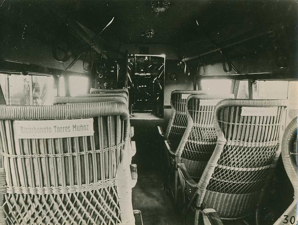 Momentos en los que los asientos de los aeroplanos son de mimbre o directamente no los hay, ya que la prioridad -o una de ellas- es transportar correo, por ejemplo. Todo resulta llamativo, exótico. Hablo de nuestra opinión ante las fotos, cómo no imaginar que para aquellas personas retratadas lo era aún más: casi mágico poder surcar los cielos y hacer un poco más pequeño el mundo, en distancia y en tiempo de desplazamiento.