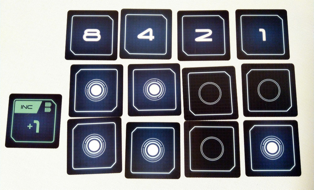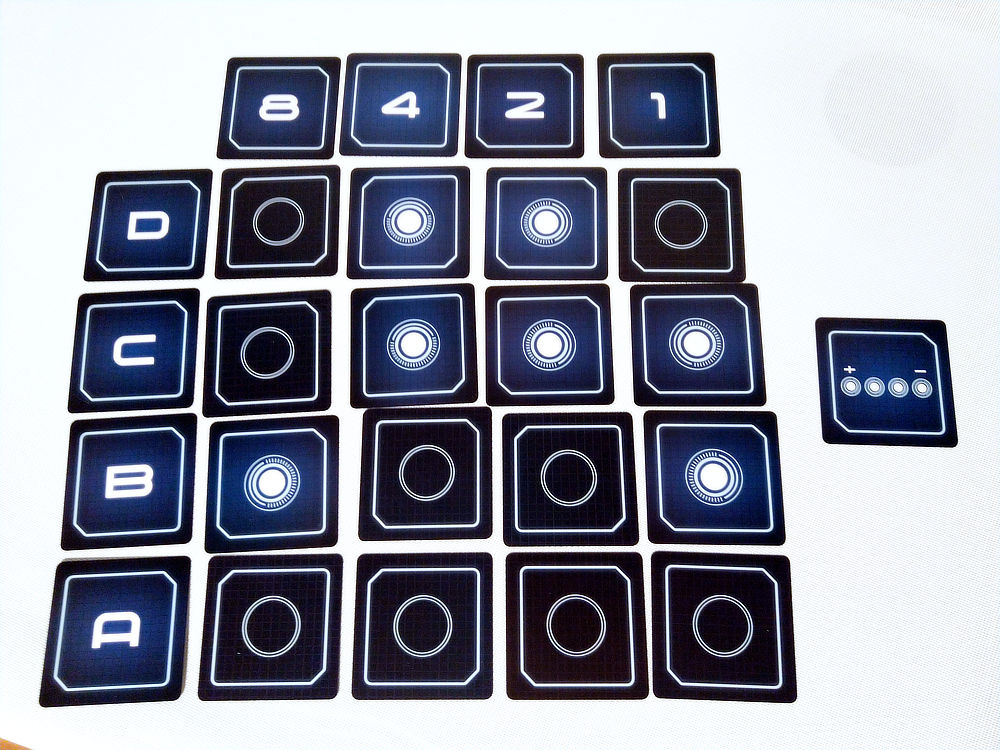 El juego consiste, básicamente, en replicar una combinación dada de bits encendidos o apagados en la línea inferior de la cuadrícula que se coloca sobre la mesa. Cada línea se llama «registro» y contiene cuatro bits que tienen dos posiciones: encendido o apagado (1 o 0). Eso significa que se debe sumar o no el contador que está en la columna en la que esté colocado ese marcador. Las columnas tienen por encima estas cifras: 8, 4, 2 y 1. Así, podremos contar desde el 0 hasta el 15 dependiendo de los bits que estén encendidos debajo de qué posición.