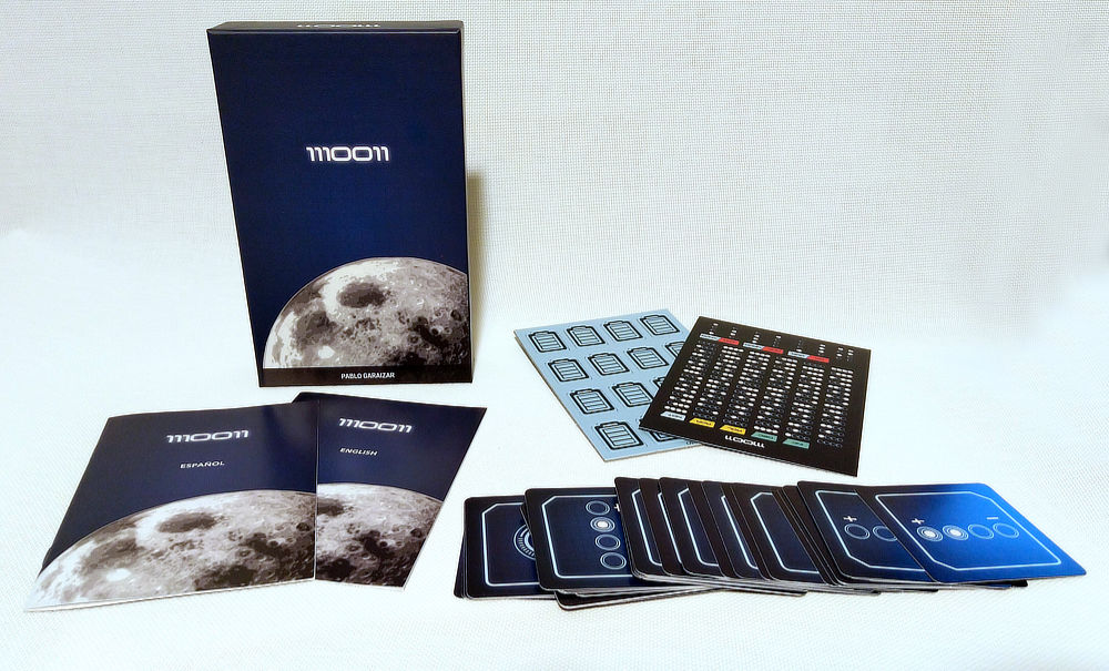 Moon -léase 1110011– es un juego peculiar. Una de esas rarezas que uno encuentra en una tienda de juegos y se pregunta cómo puede compartir estanterías con todos esos títulos de colores alegres y temas banales que tanto nos apasionan. A su lado, Moon debería venderse con letreros de neón para que no pasara desapercibida su caja. Y es que es pequeña, y tiene una portada que destaca poco o nada pero que, personalmente, por ese aire minimalista que tiene, me parece una de las más bonitas que existen hoy en día. Cuestión de gustos.
