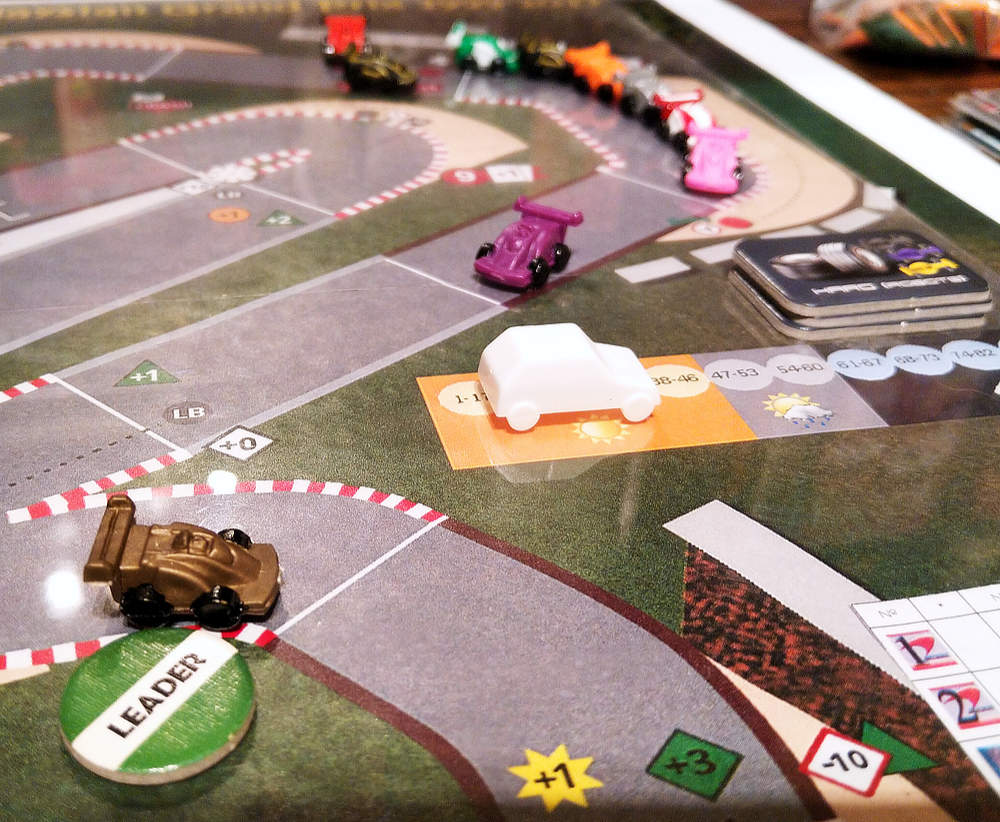 Decir esto es una trampa que ya habrán descubierto. Es verdad: en la caja básica la idea es jugar una partida de forma casual, pero en siguientes expansiones -concretamente en la segunda- se añadieron las normas de campeonato y de compañero de equipo, algo parecido a lo que se propone en Benetton. Pero en la caja original esto cambiaba poco o nada las partidas, si acaso el uso de cartas para manipular de alguna manera la actitud de nuestro compañero sobre la pista.