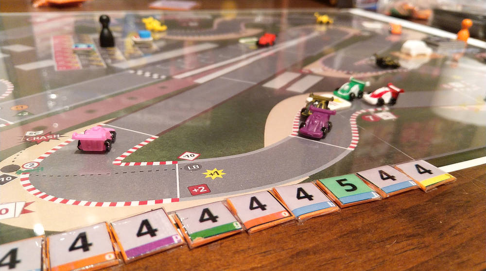 Luego, como siempre, hay cositas que ir probando. He leído a veces críticas sobre los contest, especialmente cuando hay muchos coches implicados. Piensen en una primera curva, por ejemplo, con cuatro o cinco coches en el ajo. La idea que circula por ahí es la de penalizar a los coches más atrasados para que no tengan las mismas opciones de ganar la pelea que el segundo, por ejemplo. Tiene su lógica pero el sistema de juego, el mismo que te dice que cada turno son dos o tres vueltas, frena el impulso de poner en práctica la medida. E incluso más que eso, el engorro de aplicar distintos modificadores a todos los coches cada vez. Con unos marcadores se podría hacer.