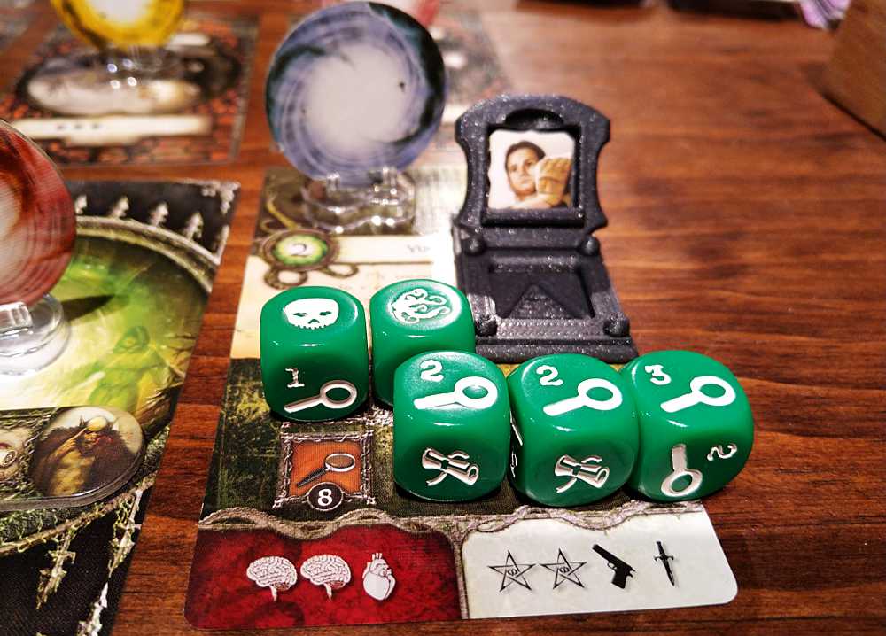 No obstante, hay cosas mejorables o directamente malas que pueden echar a alguno atrás. Por una parte este discutible regusto temático que tienen el desarrollo de las partidas. Que sí, que nunca pierdes de vista que hay un primigenio acechando pero al final es tirar dados y te da igual estar en un sitio o en otro. A mi, personalmente, no me mete en ninguna narración, lo que no quiere decir que no haya disfrutado jugándolo: he tenido partidas épicas.