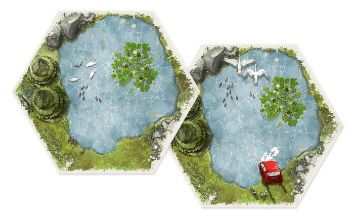 La campaña no ha tenido strech goals. En vez de eso ha optado por hacer desbloqueos diarios de losetas, expansiones, expansiones de expansiones y añadidos varios que responden casi de forma análoga a lo visto en su día con la campaña de Rallyman GT [aquí su reseña]. Como veremos a continuación, ambas cajas están pensadas para entenderse y, hasta cierto punto, incluso para ver mesa a la vez de forma conjunta. La clave son las losetas, totalmente compatibles entre los dos juegos, y que han obligado a soluciones más o menos salomónicas en cuanto a los reglamentos a aplicar en cada caso.