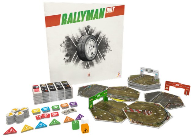 Empecemos por ahí, precisamente. Una de las expansiones más originales y esperadas de Rallyman Dirt es la que abre la competición de rallies a las carreras de Rallycross, competiciones al estilo visto en GT, con varios coches en pista, pero con las peculiaridades a las que obliga su desarrollo sobre terrenos alejados del asfalto. La caja que incluye reglas y materiales es la que se ha dado en llamar Rx. Les confieso que, de la misma manera que no acababa de ver el sistema Rallyman en un juego de carreras al uso, tampoco lo acabo de ver aquí. Pero el éxito del GT augura un buen resultado.