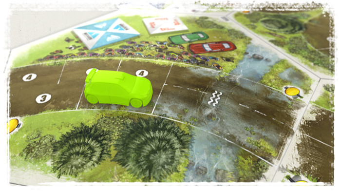 Otra adición pequeña pero interesante son las fichas para personalizar los tramos. Se han incluido de ríos, de saltos y de chicanes, que me parecen las más divertidas de todas porque le da sentido al doble carril que hay en cada casilla, algo que no pasaba en el original y que, de primeras, me afea mucho el conjunto. Como otro detalle que días y días de verlo en campaña no han acabado de eliminar el malestar: veo asfalto sucio pero ni rastro de los tramos de tierra, con el color de la tierra de la expansión Dirt del clásico. Habrá que acostumbrarse. Tiempo habrá para ello.