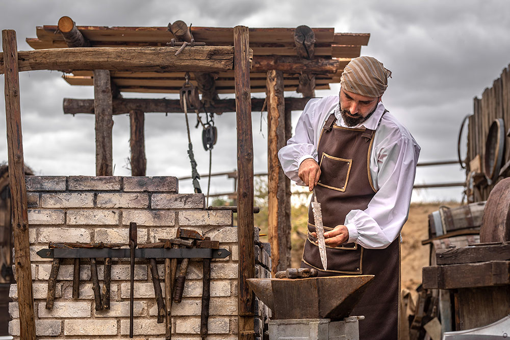 En realidad, el castillo es el punto más ostentoso sobre el horizonte del parque pero ni siquiera hace falta llamar a sus puertas para comenzar a disfrutar del viaje en el tiempo. A sus pies se ubica una primera zona de tiendas y de restauración que recrea un poblado medieval, la denominada ‘Puebla Real’. Todo ha sido creado al milímetro de tal modo que hasta un herrero de profesión se encarga de hacer espadas y profundizar en la técnica por la que Toledo también ha sido puesta en el mapa (y que Forjado a Fuego ya ha elevado a los prime time de medio mundo).