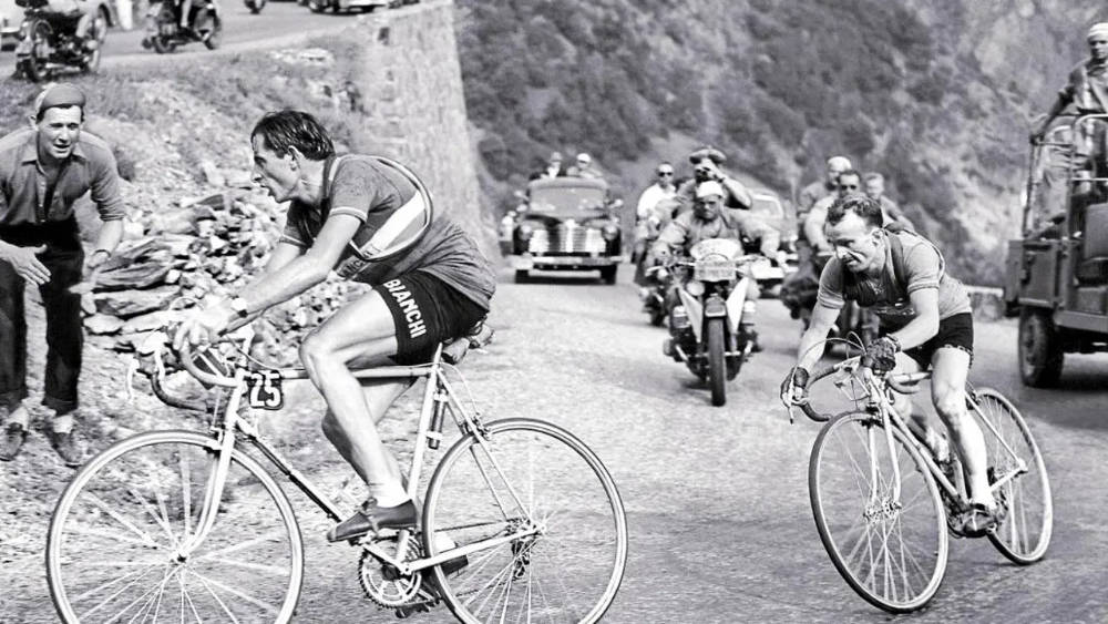 Y pongamos que lo que se eleva por encima del resto es el gran duelo entre los dos grandes ciclistas del momento, Fausto Copi y Gino Bartali. Este último, ídolo en camino de bajada tras una excelsa carrera (dos Tours y tres Giros sobre la mesa); el otro, joven talento que aún debería sumar muchos títulos en lo venidero pero que en ese momento ya miraba de tú a tú a cualquiera. Al margen de las crónicas de colorín, de historias de ciclistas anónimos o no tanto, de resultados deportivos objetivos y pulcros, el talento de Buzzati convierte el duelo entre los dos grandes en una suerte de enfrentamiento místico cuyos asaltos se dirimen en las etapas más duras con los puertos más emblemáticos. La montaña no engaña, se dice.