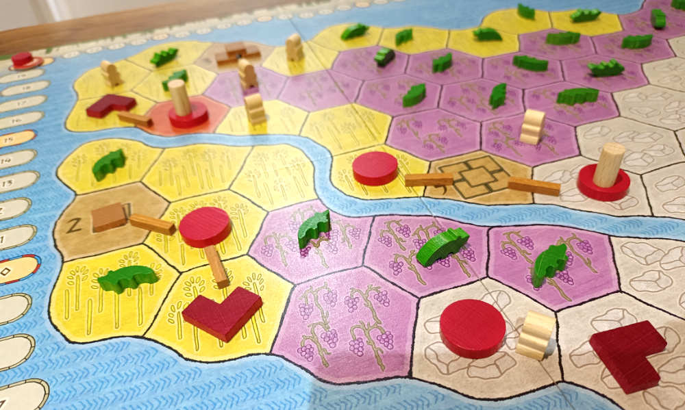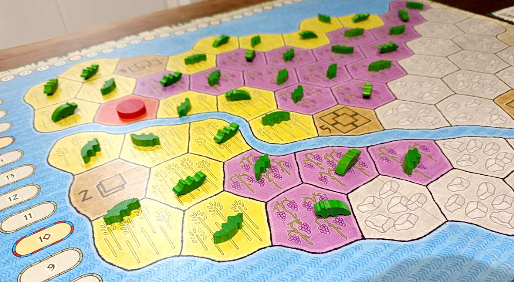 Hablemos de un par de cosas malas, no obstante. He tenido la sensación en mis partidas de que llega un momento en el que tal vez voy casi a piñón fijo. Es algo muy acotado a las rondas finales, no tanto en los dos primeros tercios de la partida. Pero me deja un poco frío y me remite a la segunda circunstancia que no me acaba de convencer: la sensación de que Fayún se alarga un poco más de la cuenta. Que sea obligatorio ver todo el mazo sea cual sea el número de jugadores alarga mucho. Y lo dicho: si al comienzo la cosa va lenta, al final el motor jugará por nosotros y nuestro papel es simplemente ver dónde o cómo rascamos algún punto, ya con la mayoría de cosas por hacer plenamente consumadas.